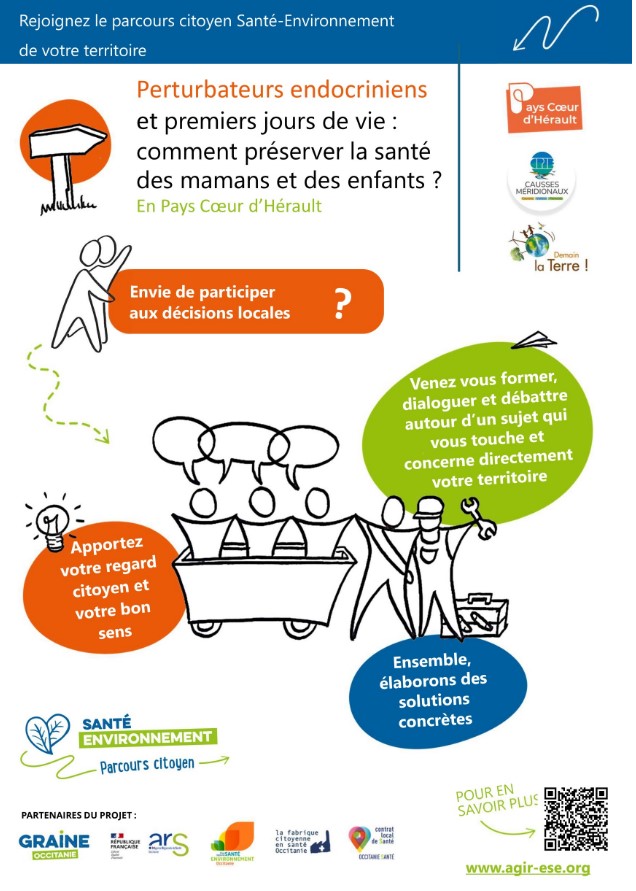 Le CPIE se mobilise aux côtés de l’association Demain la Terre et du CLS du Pays Cœur d’Hérault, autour d’une thématique majeure de santé-environnement : l’exposition aux perturbateurs endocriniens pendant les 1 000 premiers jours de la vie.